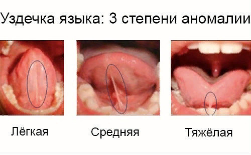 - легкая – размер уздечки немного короче нормы, движения языка почти не ограничены;